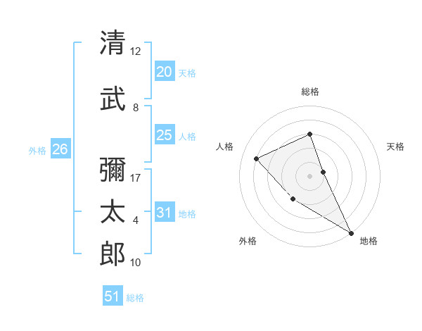 清武 彌太郎さんを姓名の画数から五運を鑑定
