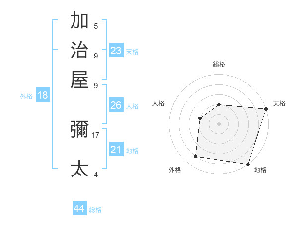 加治屋 彌太さんを姓名の画数から五運を鑑定