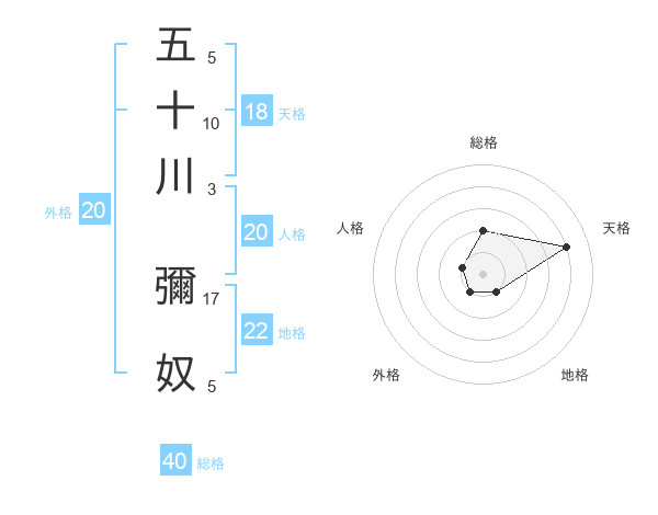 五十川 彌奴さんを姓名の画数から五運を鑑定