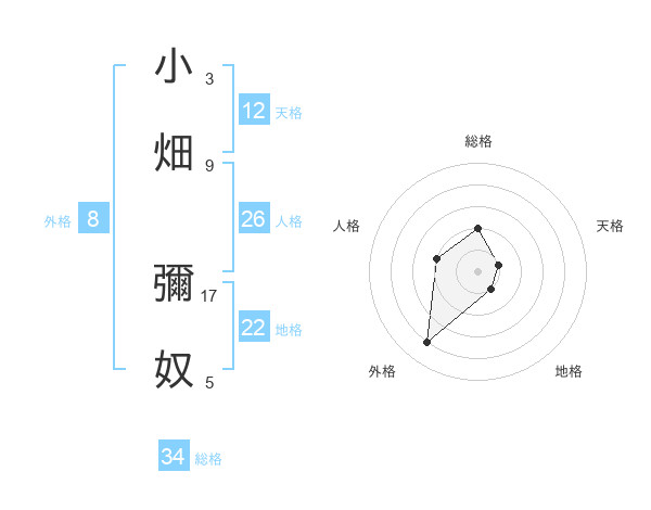 小畑 彌奴さんを姓名の画数から五運を鑑定