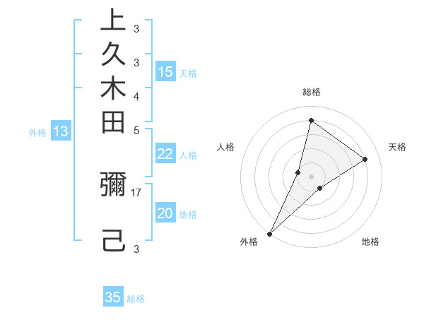 上久木田 彌己さんを姓名の画数から五運を鑑定