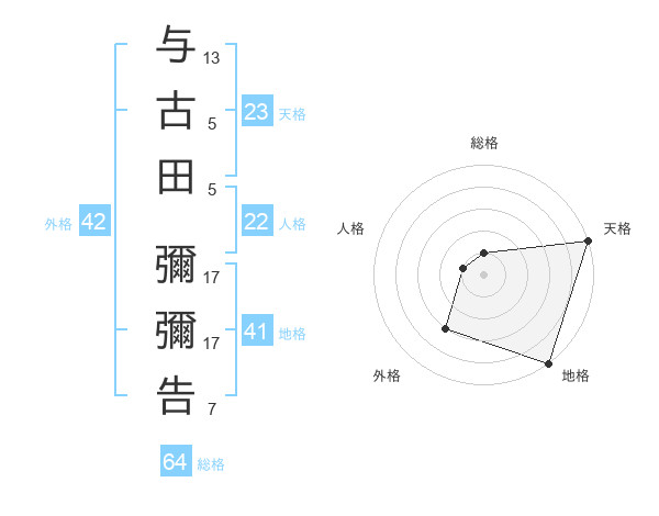 与古田 彌彌告さんを姓名の画数から五運を鑑定