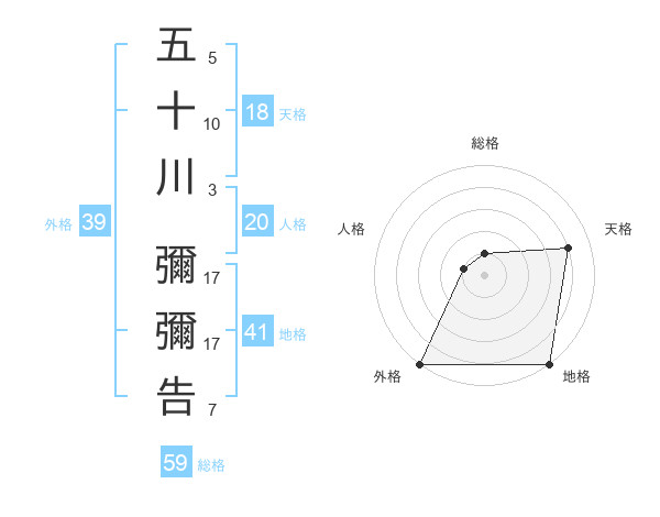 五十川 彌彌告さんを姓名の画数から五運を鑑定