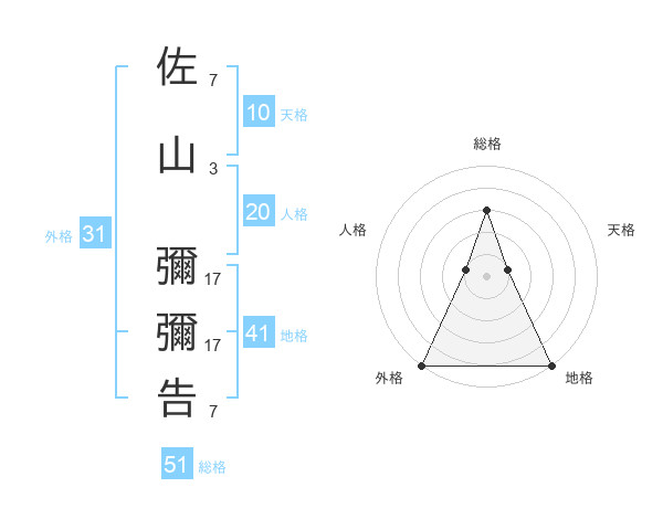 佐山 彌彌告さんの総格は51画の3点!