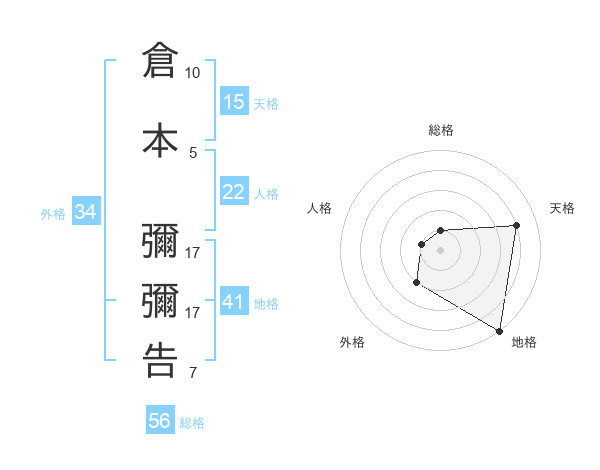 倉本 彌彌告さんを姓名の画数から五運を鑑定