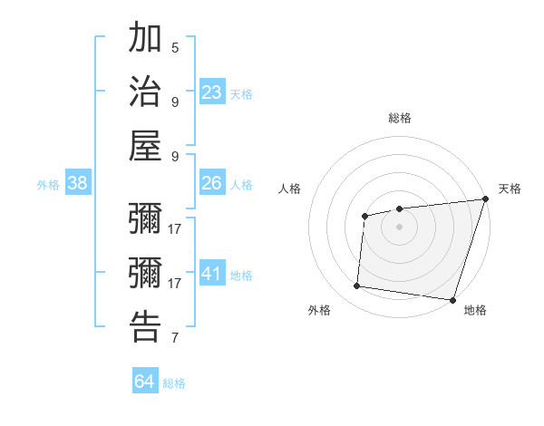 加治屋 彌彌告さんを姓名の画数から五運を鑑定