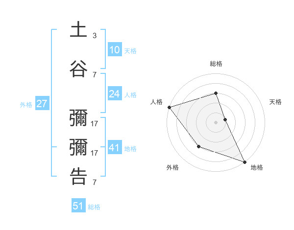 土谷 彌彌告さんの総格は51画の3点!