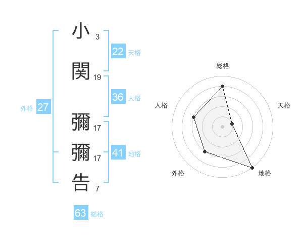 小関 彌彌告さんを姓名の画数から五運を鑑定