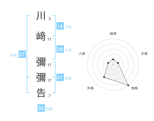 川﨑 彌彌告さんを姓名の画数から五運を鑑定