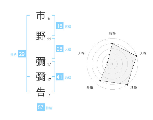 市野 彌彌告さんの総格は57画の4点!
