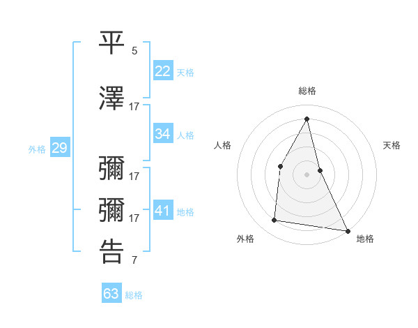 平澤 彌彌告さんの総格は63画の4点!