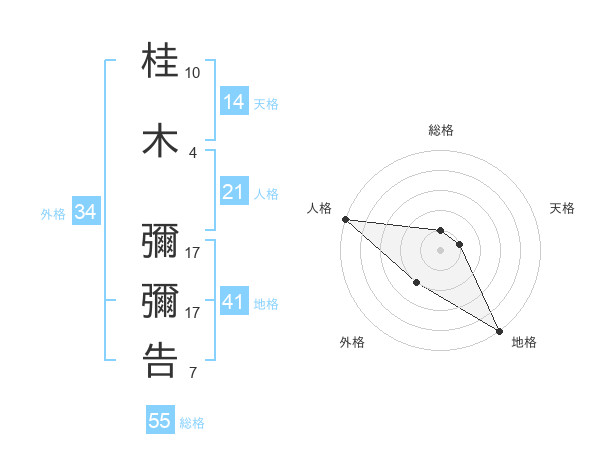 桂木 彌彌告さんを姓名の画数から五運を鑑定