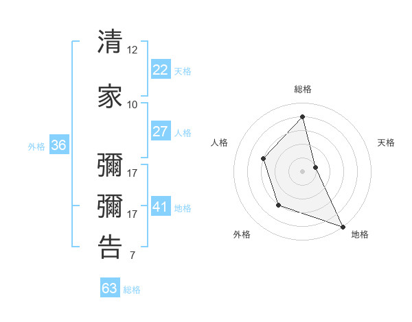 清家 彌彌告さんの総格は63画の4点!