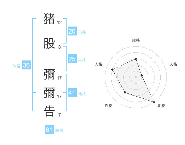 猪股 彌彌告さんを姓名の画数から五運を鑑定