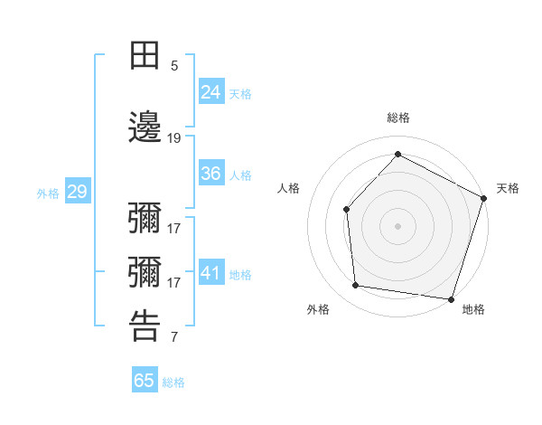 田邊 彌彌告さんの天格は24画の5点!