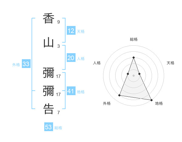 香山 彌彌告さんを姓名の画数から五運を鑑定
