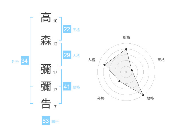 高森 彌彌告さんを姓名の画数から五運を鑑定