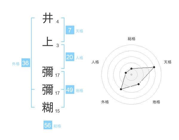 井上 彌彌糊さんを姓名の画数から五運を鑑定
