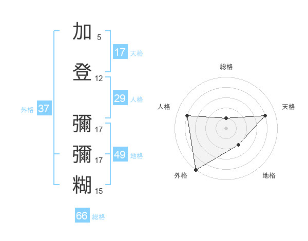 加登 彌彌糊さんの総格は66画の1点!