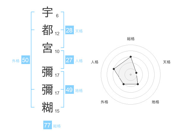 宇都宮 彌彌糊さんの総格は77画の3点!