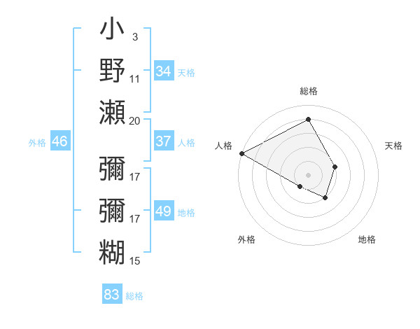 小野瀬 彌彌糊さんの総格は83画の4点!