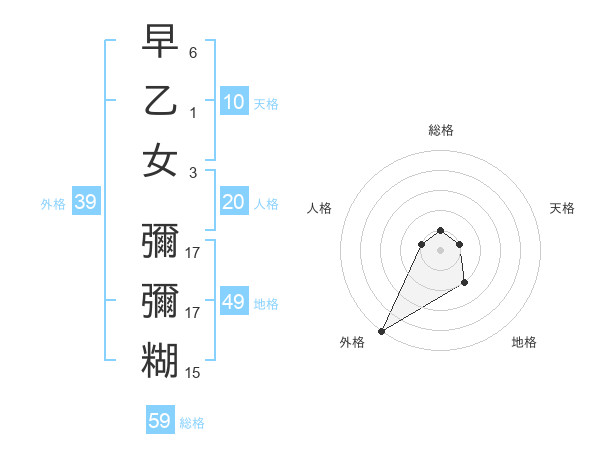 早乙女 彌彌糊さんの外格は39画の5点!