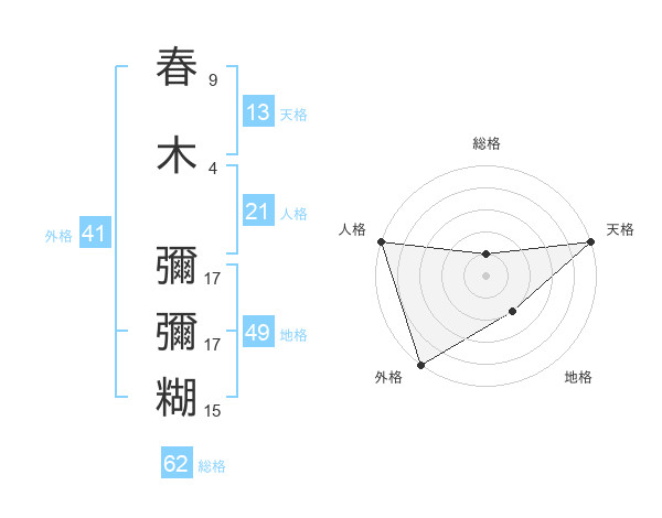 春木 彌彌糊さんを姓名の画数から五運を鑑定