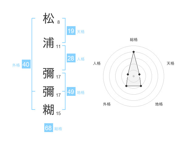 松浦 彌彌糊さんを姓名の画数から五運を鑑定
