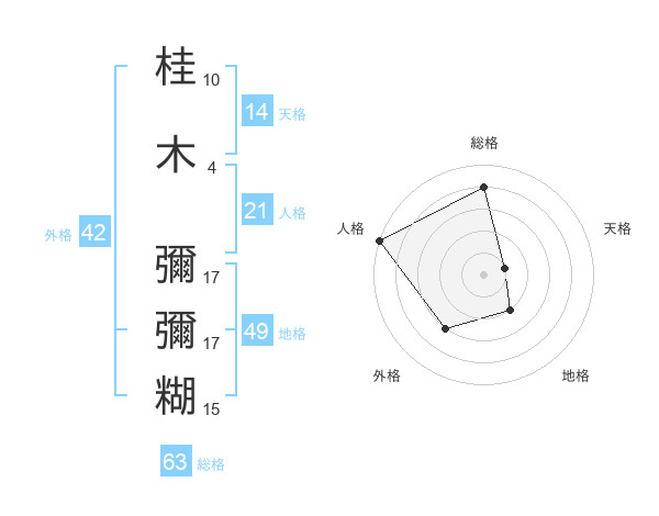 桂木 彌彌糊さんを姓名の画数から五運を鑑定