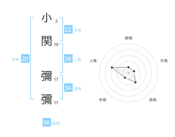 小関 彌彌さんの天格は22画の1点!