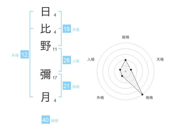 日比野 彌月さんを姓名の画数から五運を鑑定