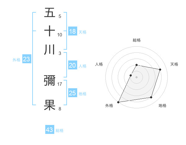 五十川 彌果さんの総格は43画の2点!