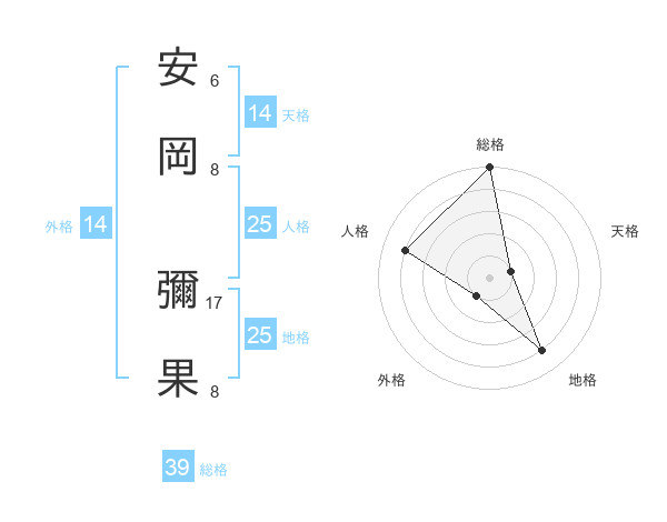 安岡 彌果さんを姓名の画数から五運を鑑定