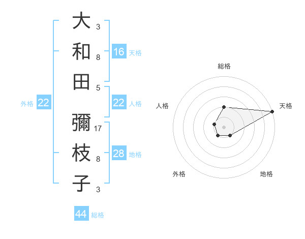 大和田 彌枝子さんを姓名の画数から五運を鑑定