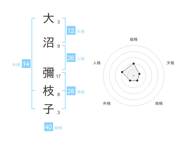 大沼 彌枝子さんを姓名の画数から五運を鑑定