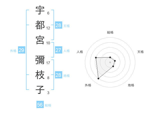 宇都宮 彌枝子さんを姓名の画数から五運を鑑定