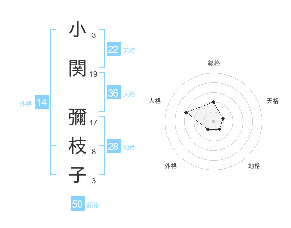 小関 彌枝子さんを姓名の画数から五運を鑑定