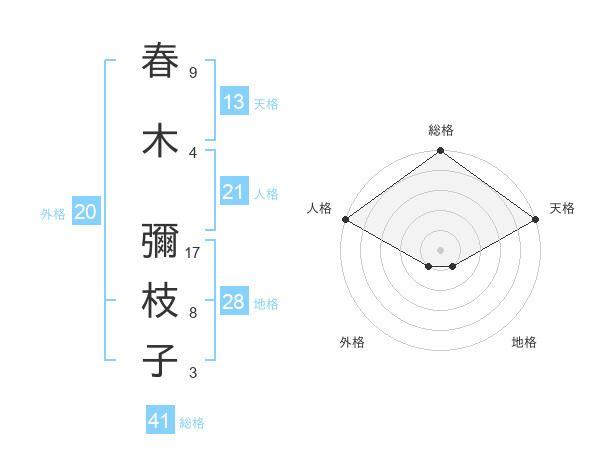 春木 彌枝子さんの天格は13画の5点!