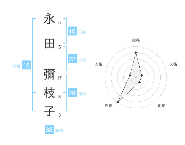 永田 彌枝子さんの総格は38画の4点!