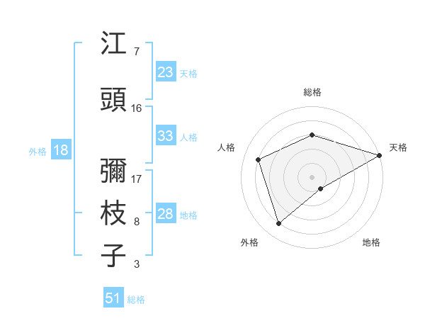 江頭 彌枝子さんを姓名の画数から五運を鑑定