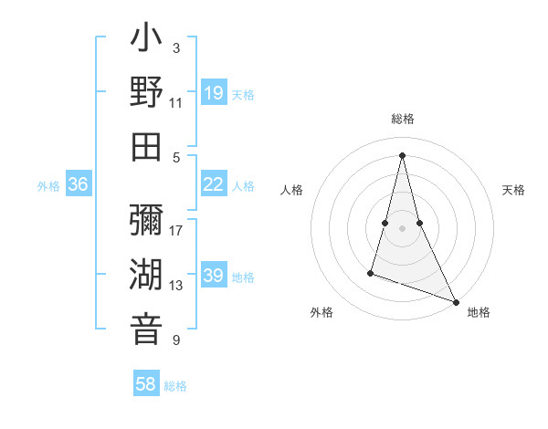 小野田 彌湖音さんを姓名の画数から五運を鑑定