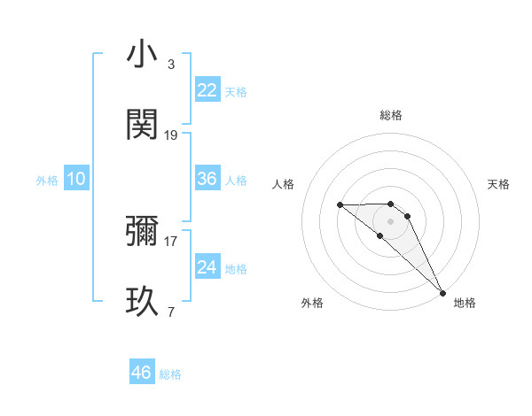 小関 彌玖さんの総格は46画の1点