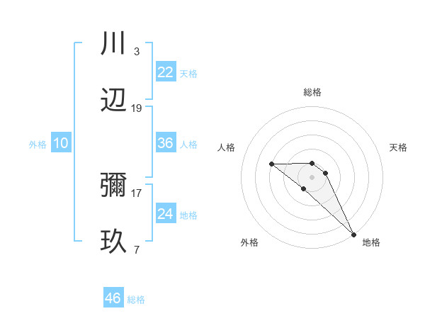川辺 彌玖さんの総格は46画の1点!