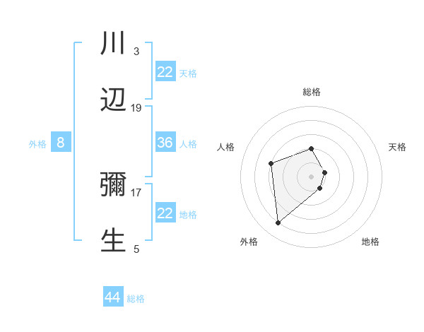 川辺 彌生さんを姓名の画数から五運を鑑定