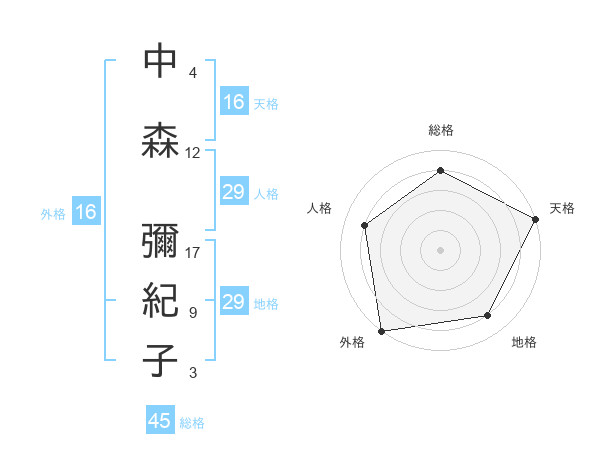 中森 彌紀子さんを姓名の画数から五運を鑑定