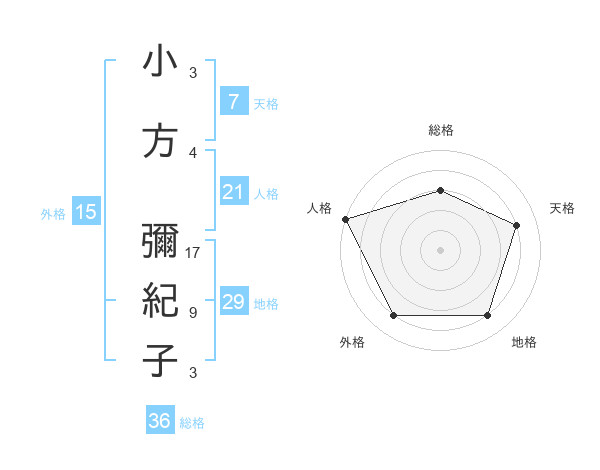 小方 彌紀子さんを姓名の画数から五運を鑑定