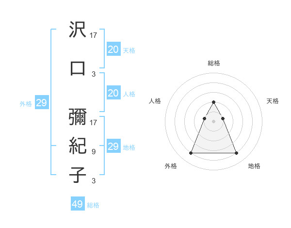 沢口 彌紀子さんの外格は29画の4点!