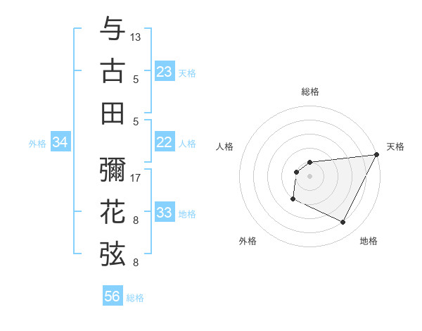与古田 彌花弦さんの総格は56画の1点