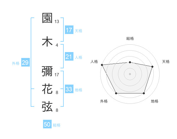 園木 彌花弦さんの総格は50画の2点!