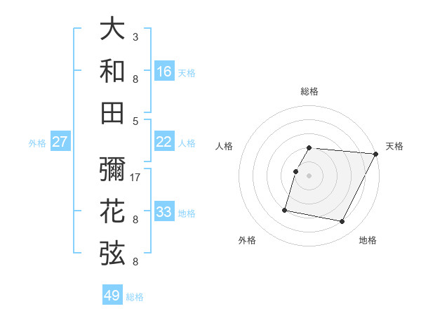 大和田 彌花弦さんの総格は49画の2点